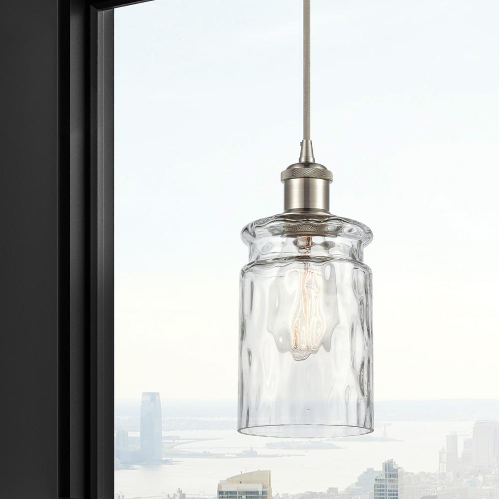 Candor - 1 Light - 5 inch - Brushed Satin Nickel - Clear Waterglass Shade - Cord hung - Mini Pendant
