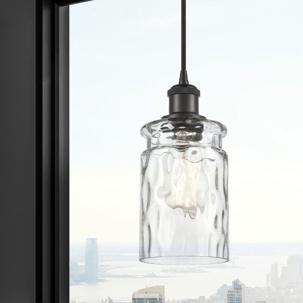 Candor - 1 Light - 5 inch - Oil Rubbed Bronze - Clear Waterglass Shade - Cord hung - Mini Pendant