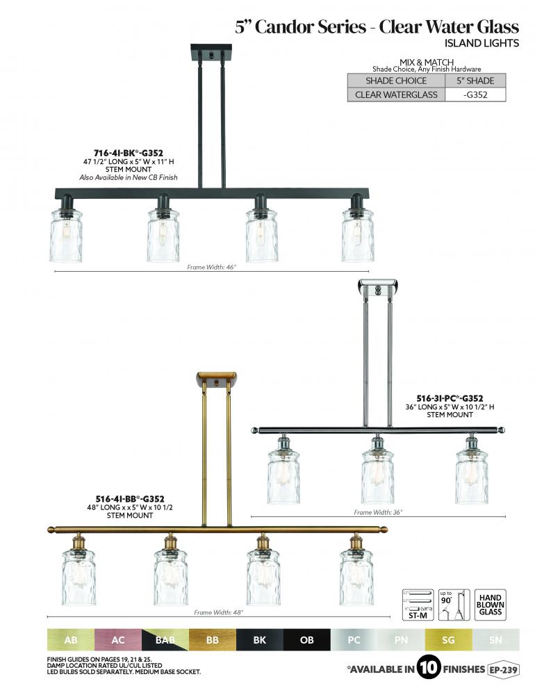 Candor - 4 Light - 48 inch - Antique Copper - Clear Waterglass Shade - Stem hung - Island Light