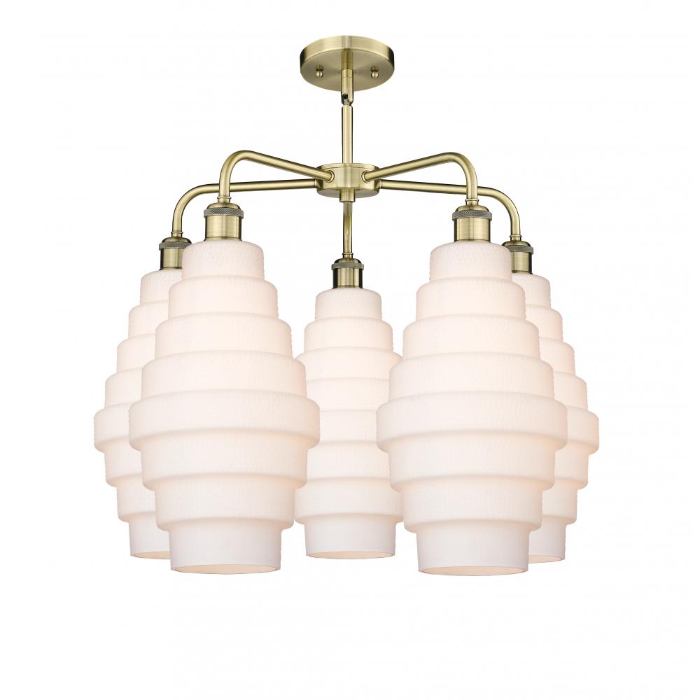 Cascade - 5 Light - 26 inch - Antique Brass - White Shade - Chandelier