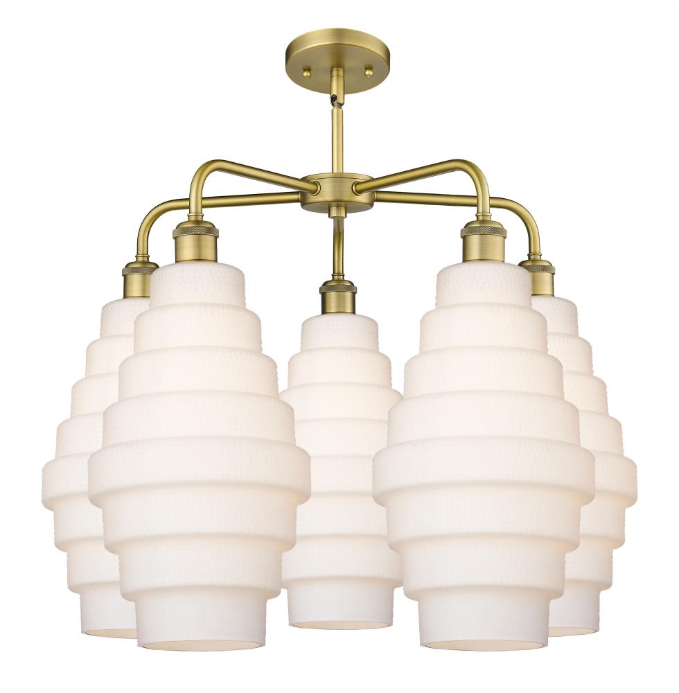 Cascade - 5 Light - 26 inch - Brushed Brass - White Shade - Chandelier
