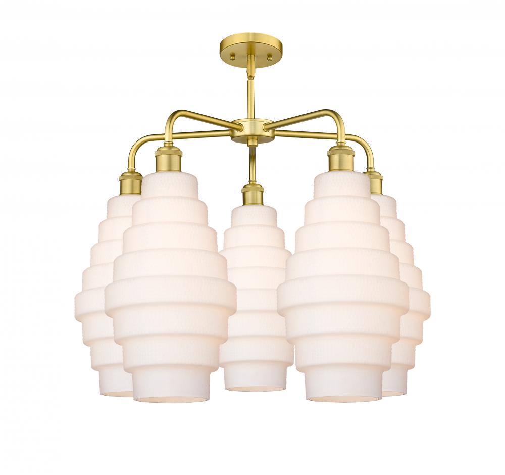 Cascade - 5 Light - 26 inch - Satin Gold - White Shade - Chandelier