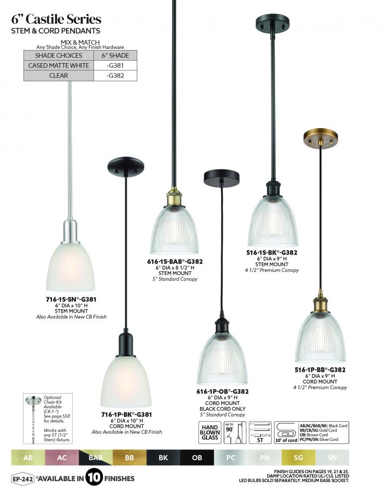 Castile - 1 Light - 6 inch - Antique Brass - Cord hung - Mini Pendant