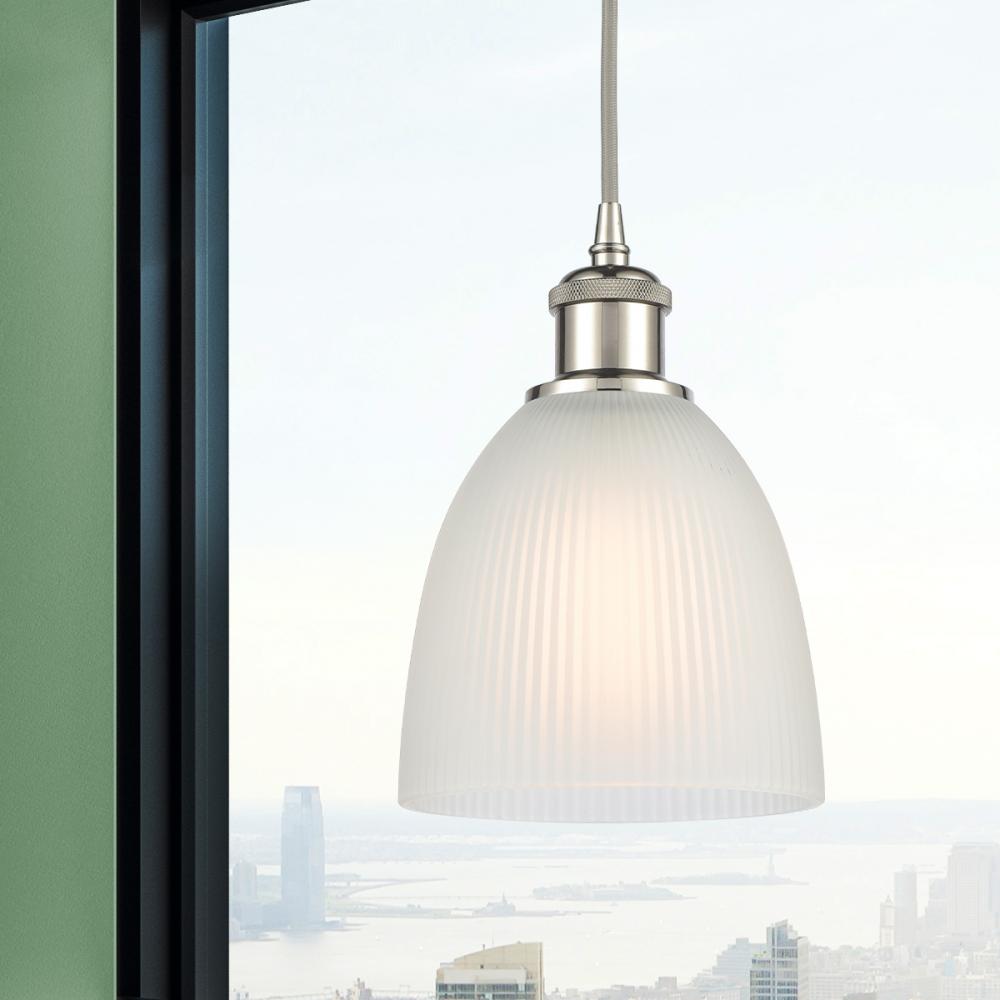 Castile - 1 Light - 6 inch - Polished Nickel - White Shade - Cord hung - Mini Pendant