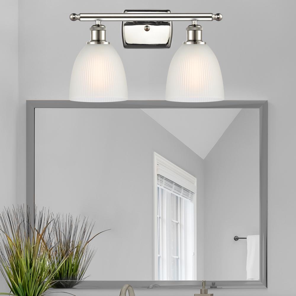 Castile - 2 Light - 16 inch - Polished Nickel - White Shade - Bath Vanity Light