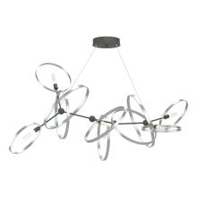 With adjustable rings hung from two steel cables, the Celesse constellation can be personalized. Choice of Soft Gold or Vintage Platinum finish for the aluminum rings and our range of standard steel finishes for the core.