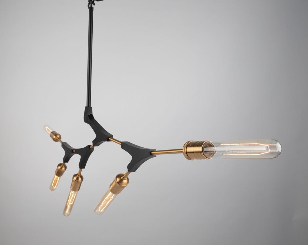 Organically shaped like tree branches, the Filiali collection 5 light chandelier features a black frame with harvest brass accent and socket covers. Can be directionally configured (arms slightly adjustible with allen key)
