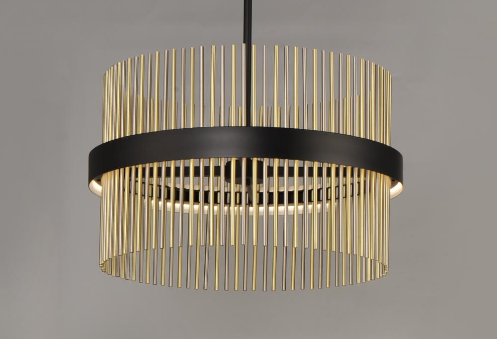 Wide bands of Matte Black metal supports an evenly spaced row of thin tubing finished in your choice of Satin Brass, Satin Nickel or a combination of the two. The stylish design is connected by WiZ that enables the lighting's White Ambiance between 270