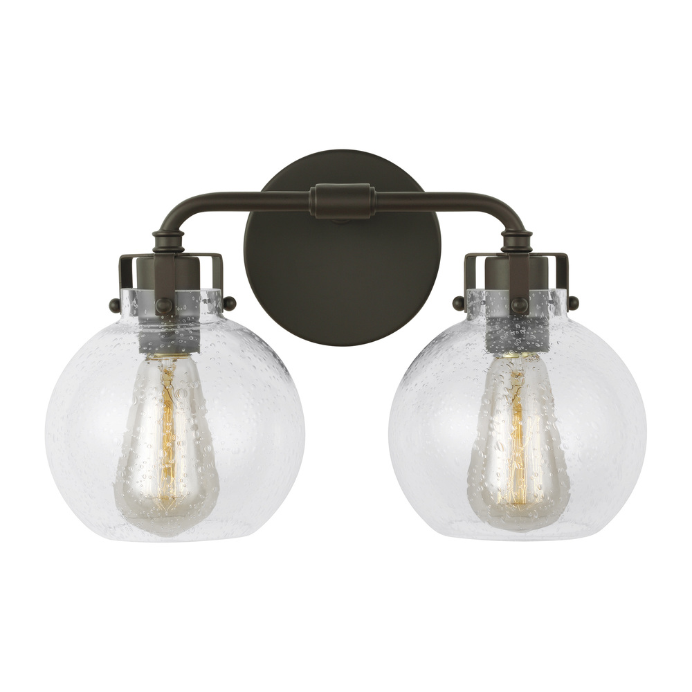 Clara features Clear Seeded glass shades that subtly diffuse the lamping while allowing the exposed bulb to be a central design element of the fixture. Choose the look that is right for your space with four finish options: Burnished Brass, Chrome, Satin Nickel, Oil Rubbed Bronze or a two-toned finish of Textured Black with Chrome.