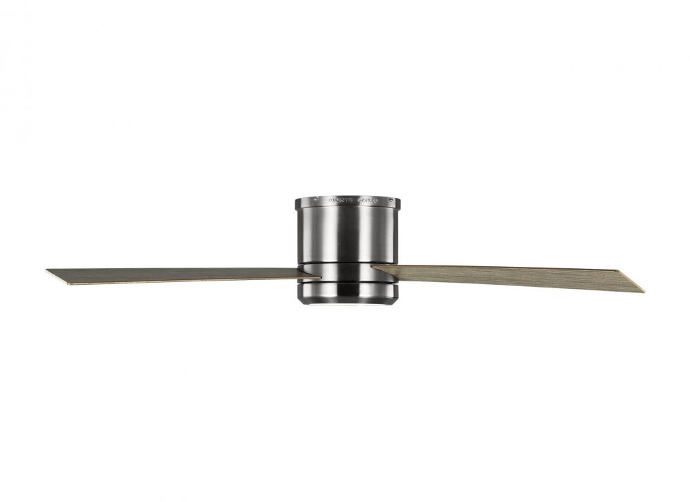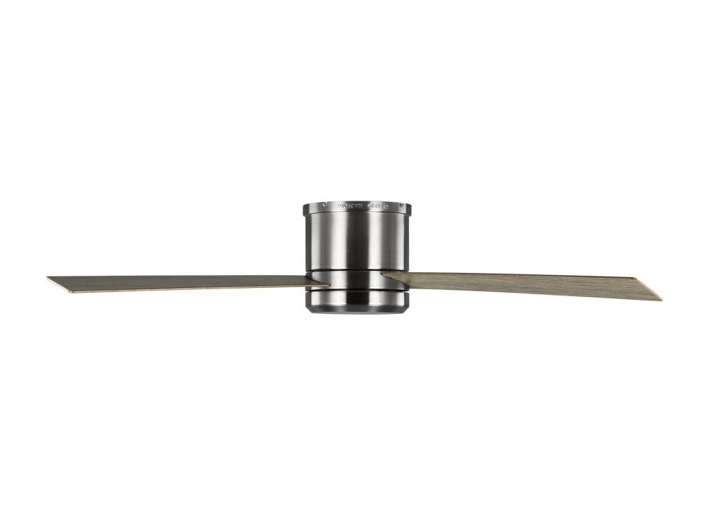 The Sean Lavin Clarity 56 LED in Brushed Steel w LGWO Blades features a 172.0 X 20.0 4 speed motor with a Twelve degree blade pitch. The Clarity 56 ceiling is a larger and more powerful version of the popular Clarity 52 fan. The Clarity 56 has a sleek, three-blade design that hugs the ceiling, making it ideal for rooms with low ceilings. It is offered in three finish combinations to suite virtually any decor requirement. Damp-rated, the Clarity 56 also comes with a four-speed wall control with LED dimmer.
