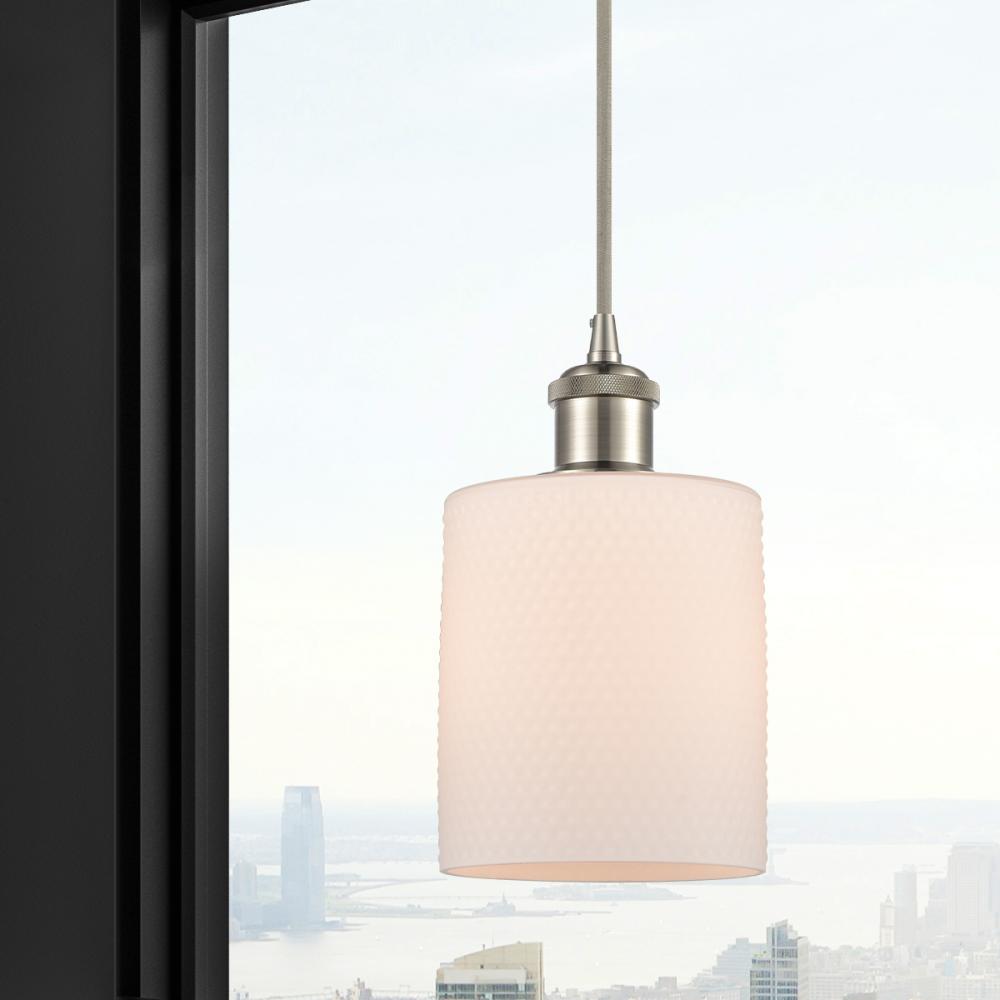 Cobbleskill - 1 Light - 5 inch - Brushed Satin Nickel - Matte White Shade - Cord hung - Mini Pendant