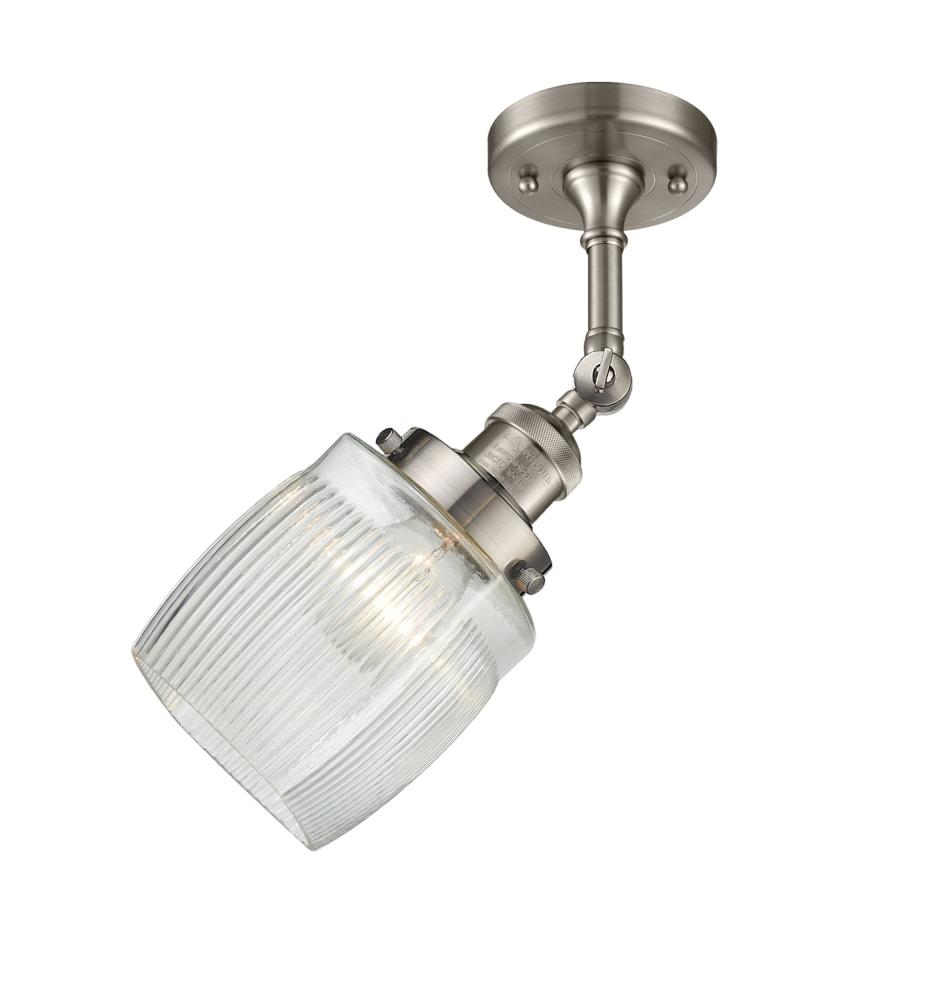 Colton - 1 Light - 6 inch - Brushed Satin Nickel - Clear Halophane Shade - Adjustable Semi-Flush Mount
