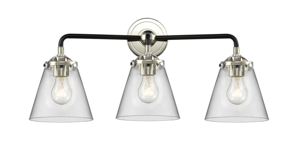 Cone - 3 Light - 24 inch - Black Polished Nickel - Clear Shade - Bath Vanity Light