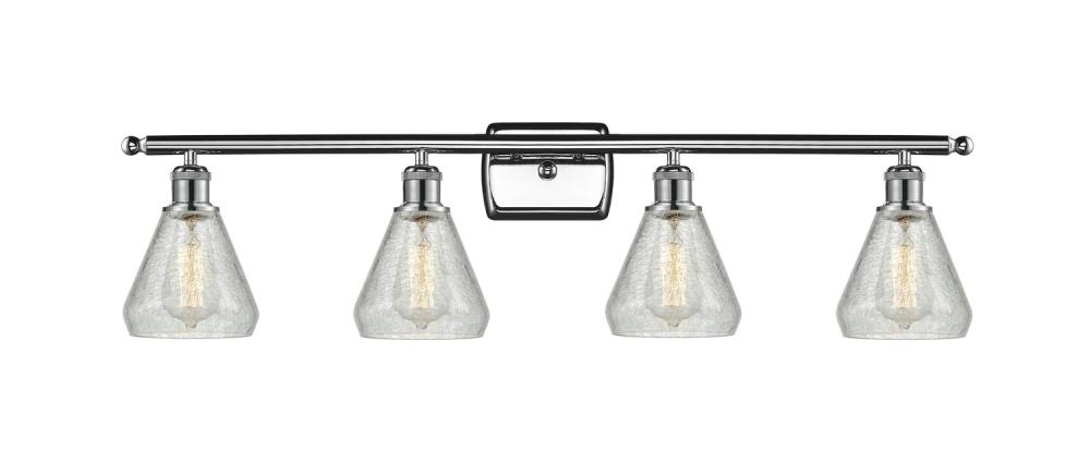 Conesus - 4 Light - 36 inch - Polished Chrome - Clear Crackle Shade - Bath Vanity Light