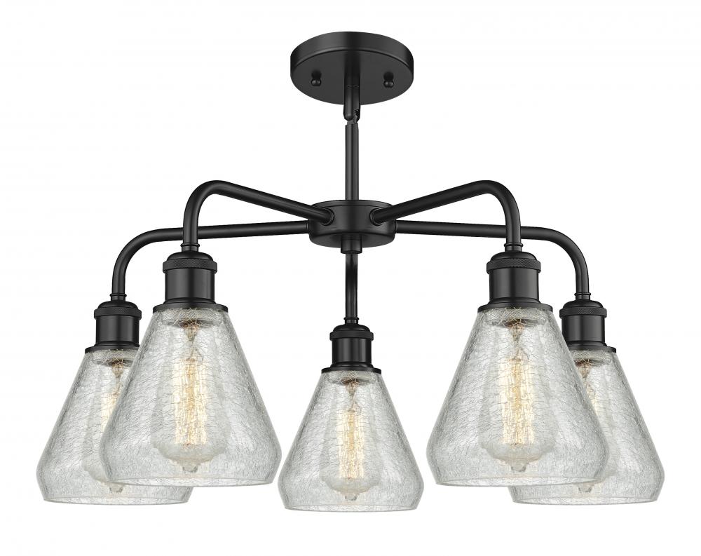 Conesus - 5 Light - 24 inch - Matte Black - Clear Crackle Shade - Chandelier