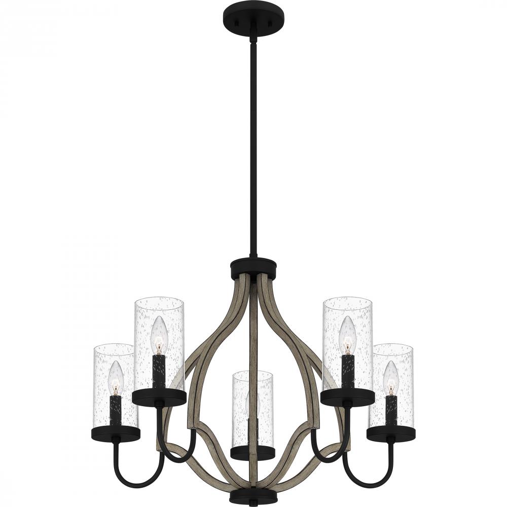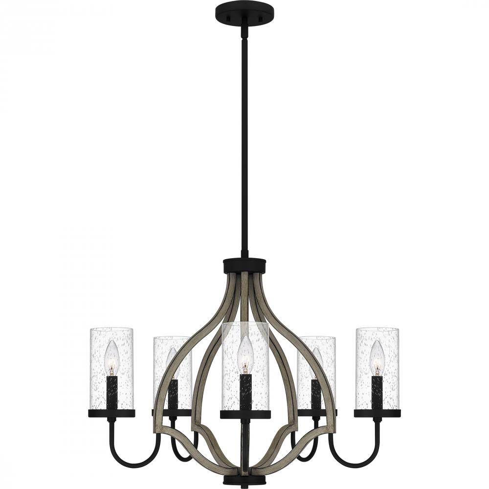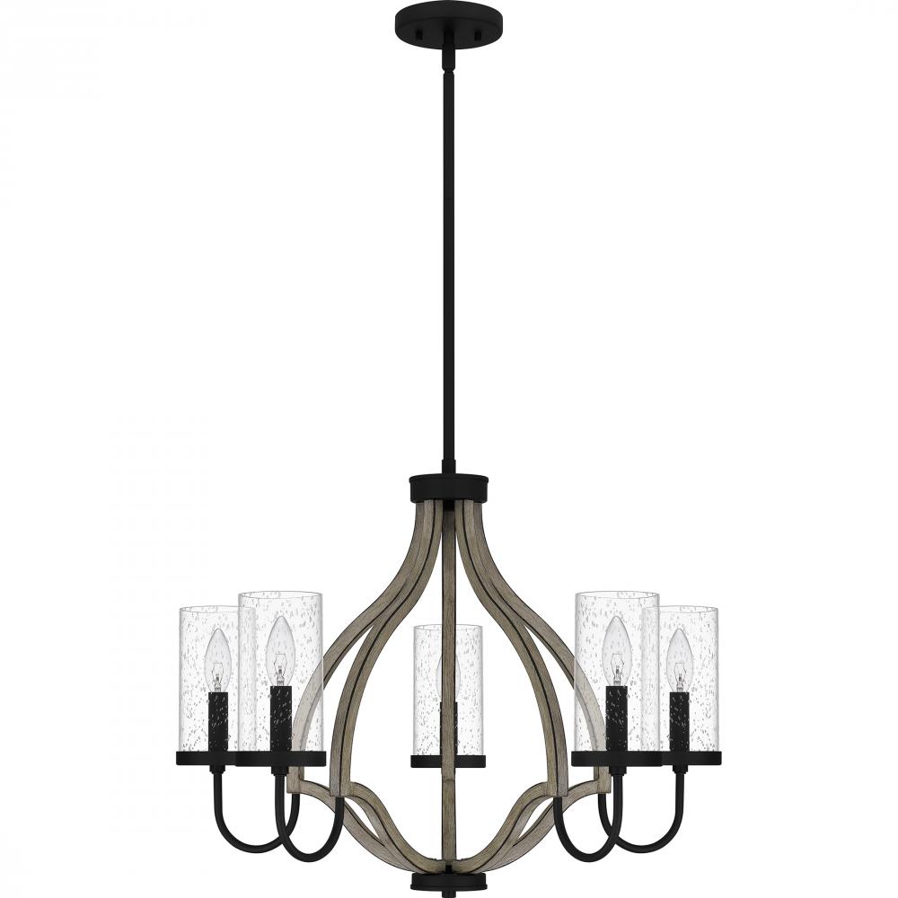 Add a rustic feel to your home with Cornelia. This farmhouse-inspired collection features weathered white maple wood toned arms and a contrasting matte black finish. Cylindrical clear seedy glass shades complete the look, highlighting the sleek exposed bul