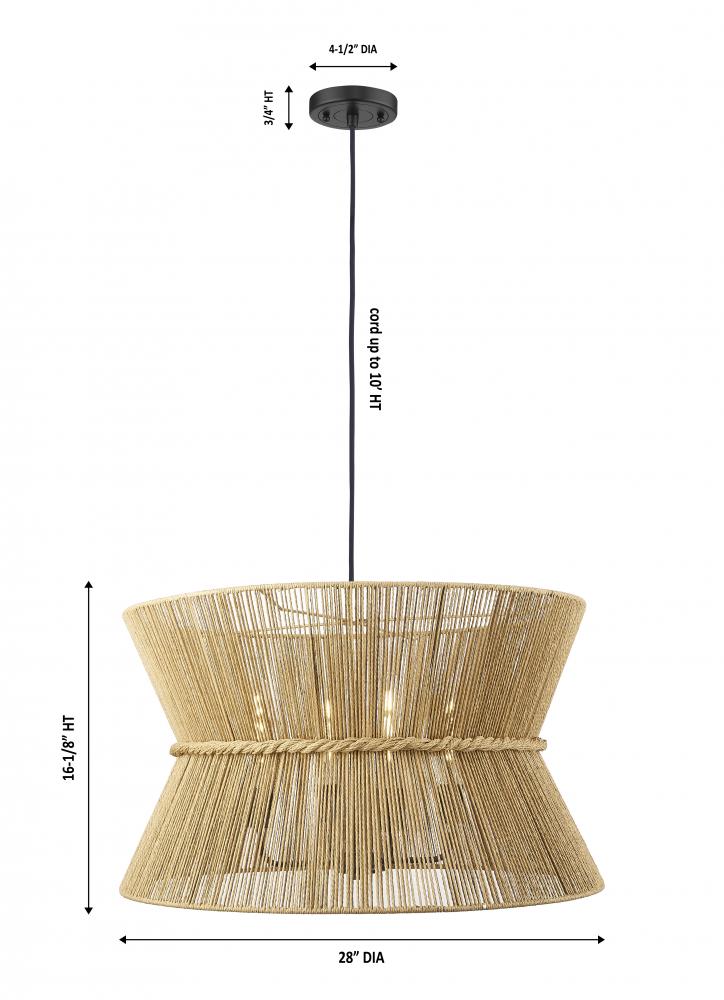 Coventry - 4 Light - 28 inch - Natural Coventry Rope - Cord hung - Pendant