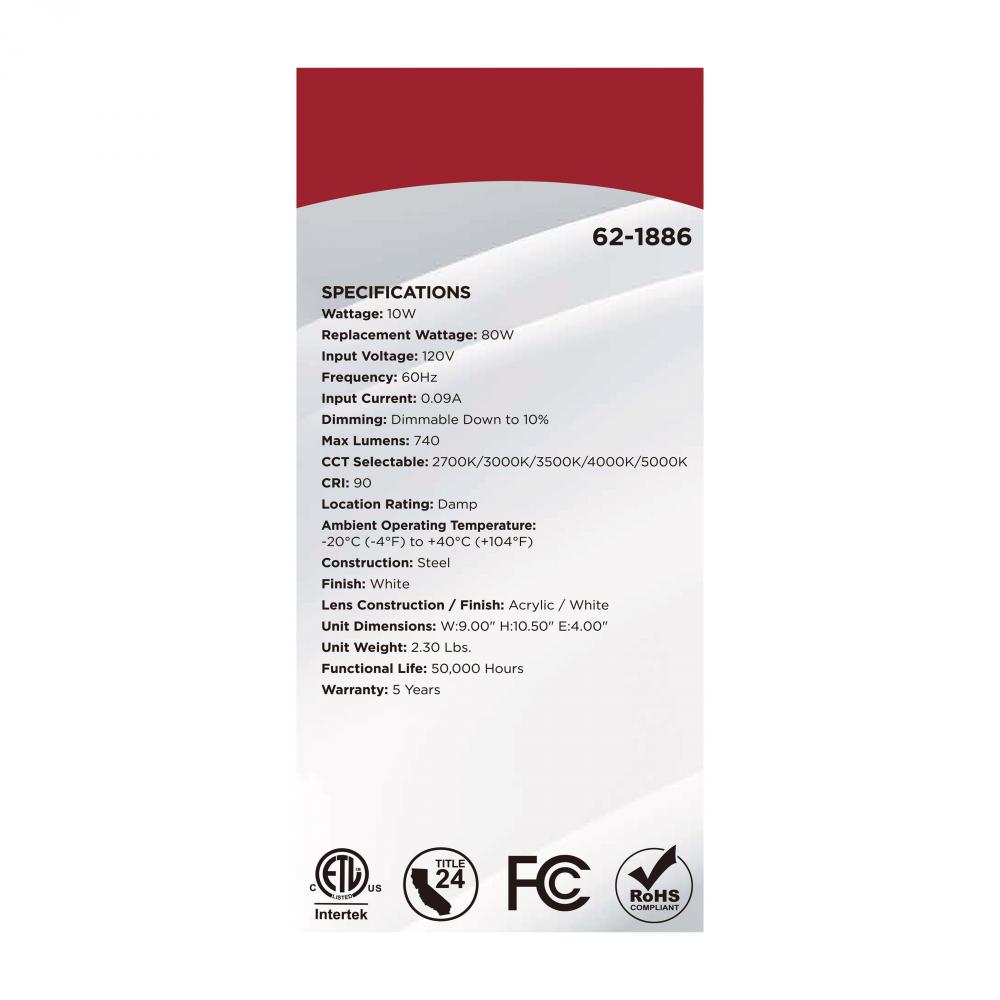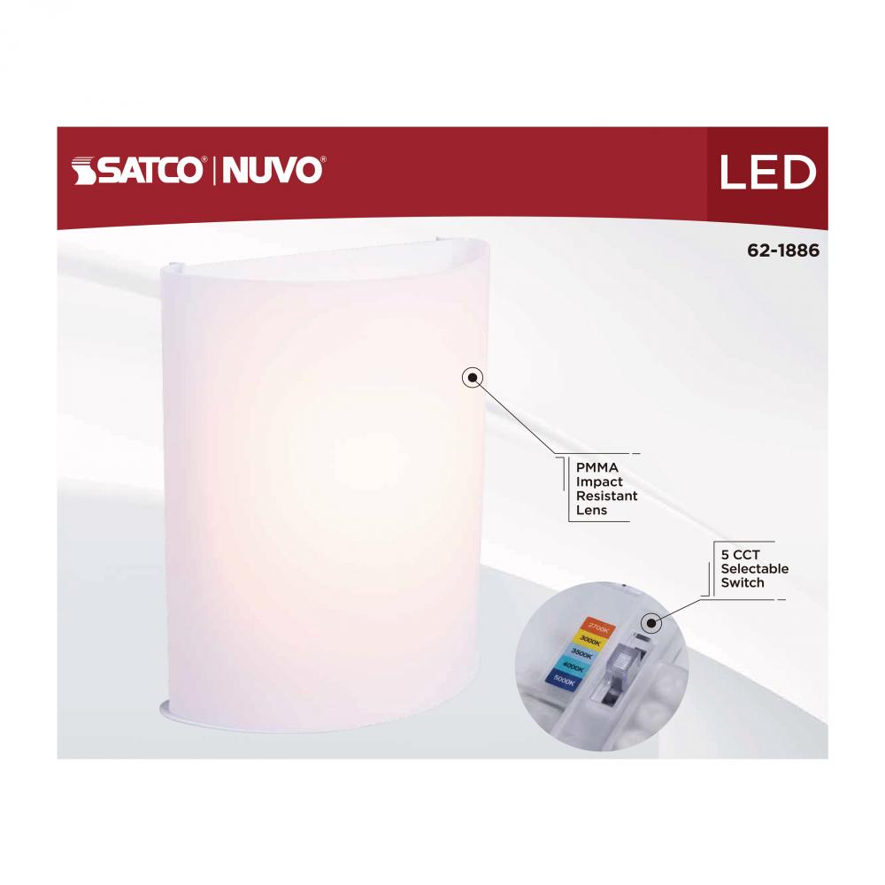 The SATCO NUVO 62-1886 Crispo Wall Sconce in All White delivers sleek, modern lighting with 5 CCT selectable technology (2700K–5000K) and 90 CRI illumination for vibrant color rendering. This 10-watt fixture replaces 80W incandescent lighting, offer