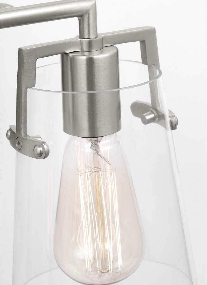 Made to coordinate across a broader range of bath hardware and design styles, this light adds bright light where you need it most with its clear glass shades and sleek metal backplate in striking, modern finishes