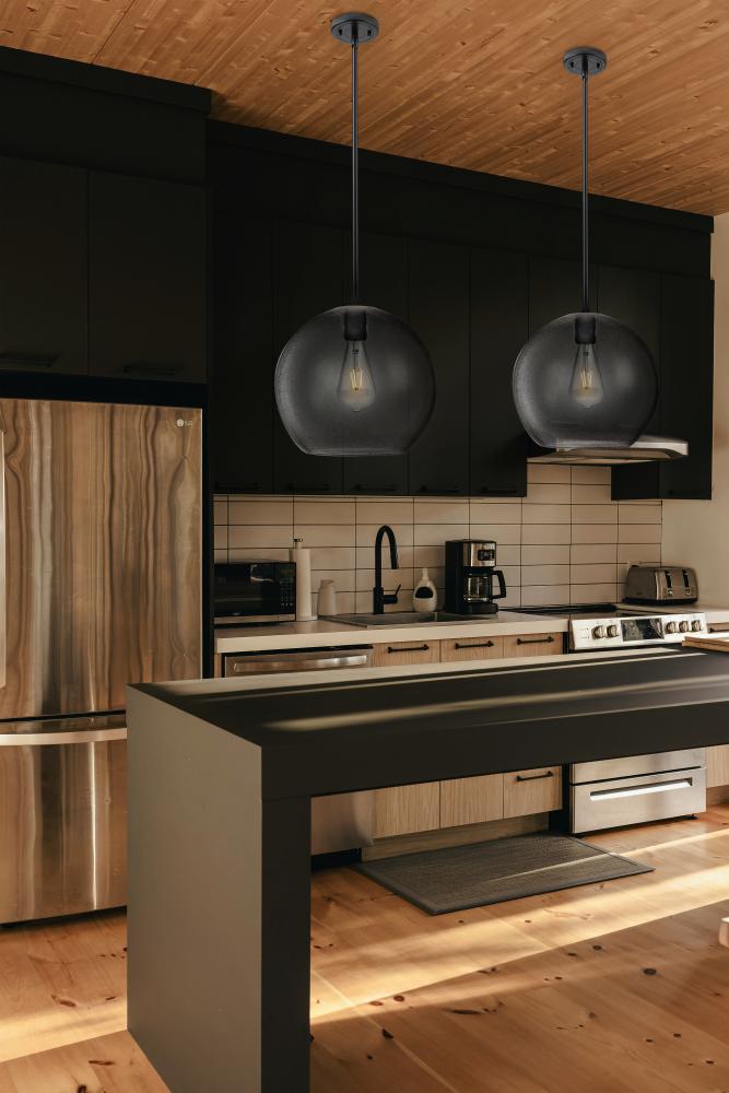 Details abound in the Crown Point Collection with an industrial take on modern sophistication. This stunning line of fixtures features cylindrical glass set in an updated restoration style frame with intricate knurling detail on the sockets, canopy, and fi