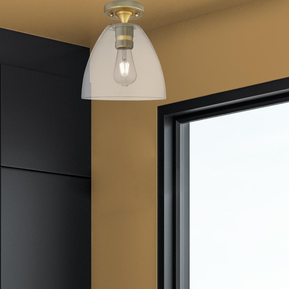 Crown Point - 1 Light - 9 inch - Brushed Brass - Clear Shade - Flush Mount