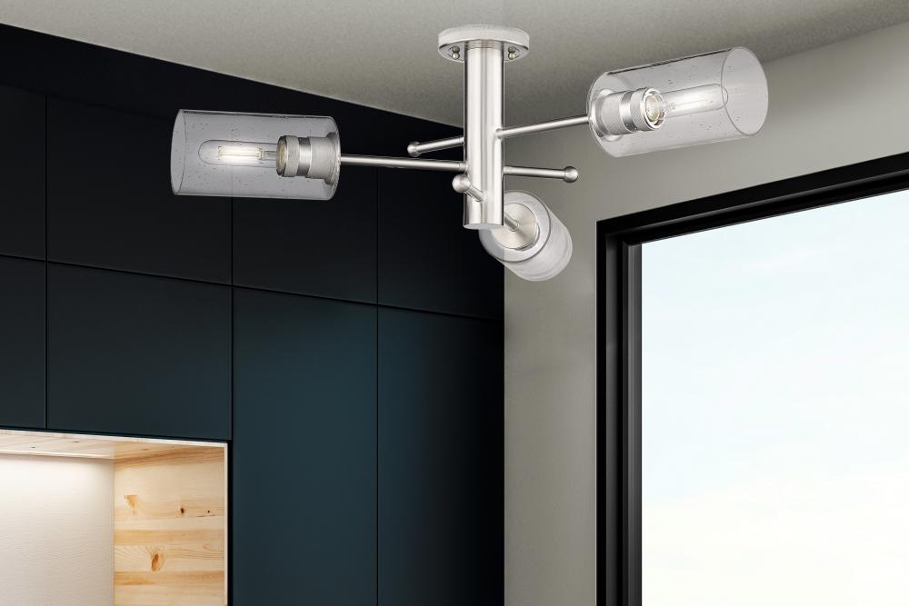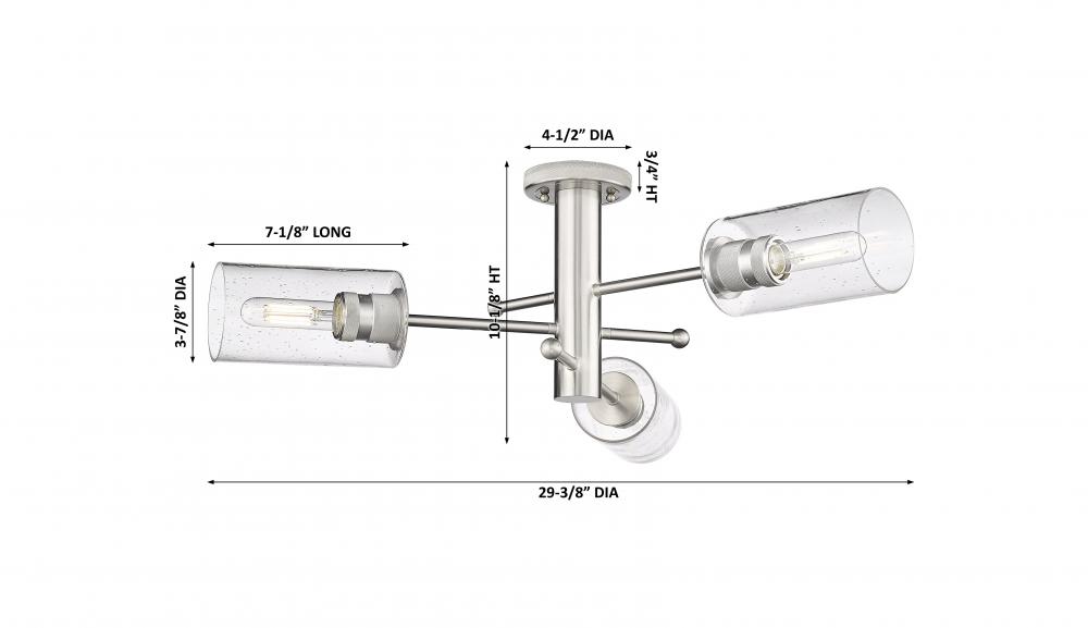 Crown Point - 3 Light - 34 inch - Satin Nickel - Seedy Shade - Semi-Flush Mount