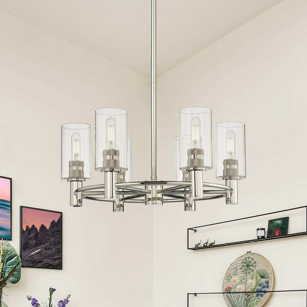 Crown Point - 6 Light - 24 inch - Polished Nickel - Clear Shade - Chandelier