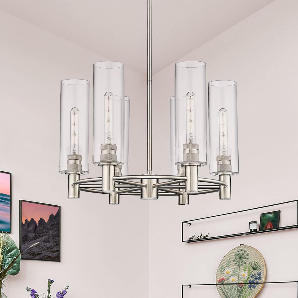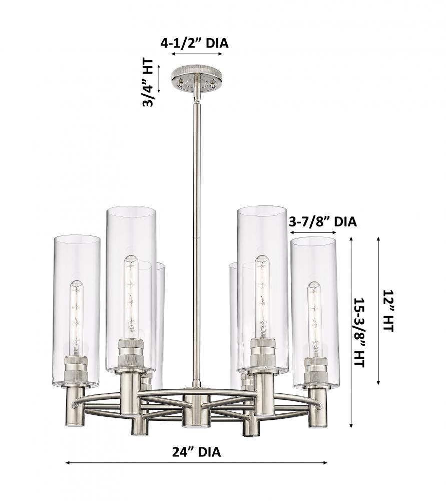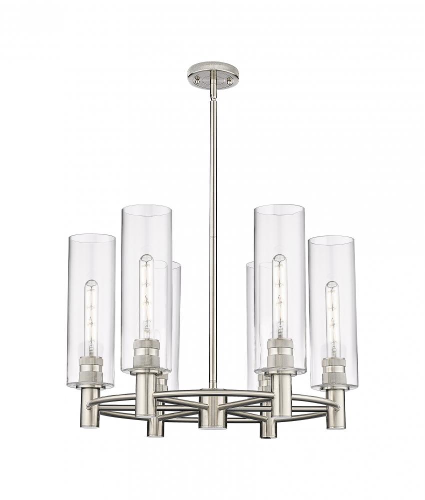 Crown Point - 6 Light - 24 inch - Satin Nickel - Clear Shade - Chandelier
