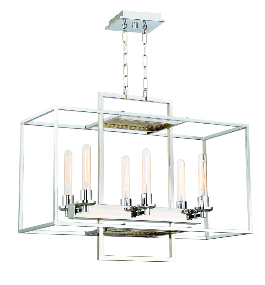 The Sparse Structure Of The Cubic Light Fixture Marries A Rustic, Lantern-Style With A Streamlined Industrial Look. The Metal Finish With Contrasting Corner Accents Give The Cubic Openness That Allows The Candle-Inspired Bulbs To Be Viewed Without Obstruction.