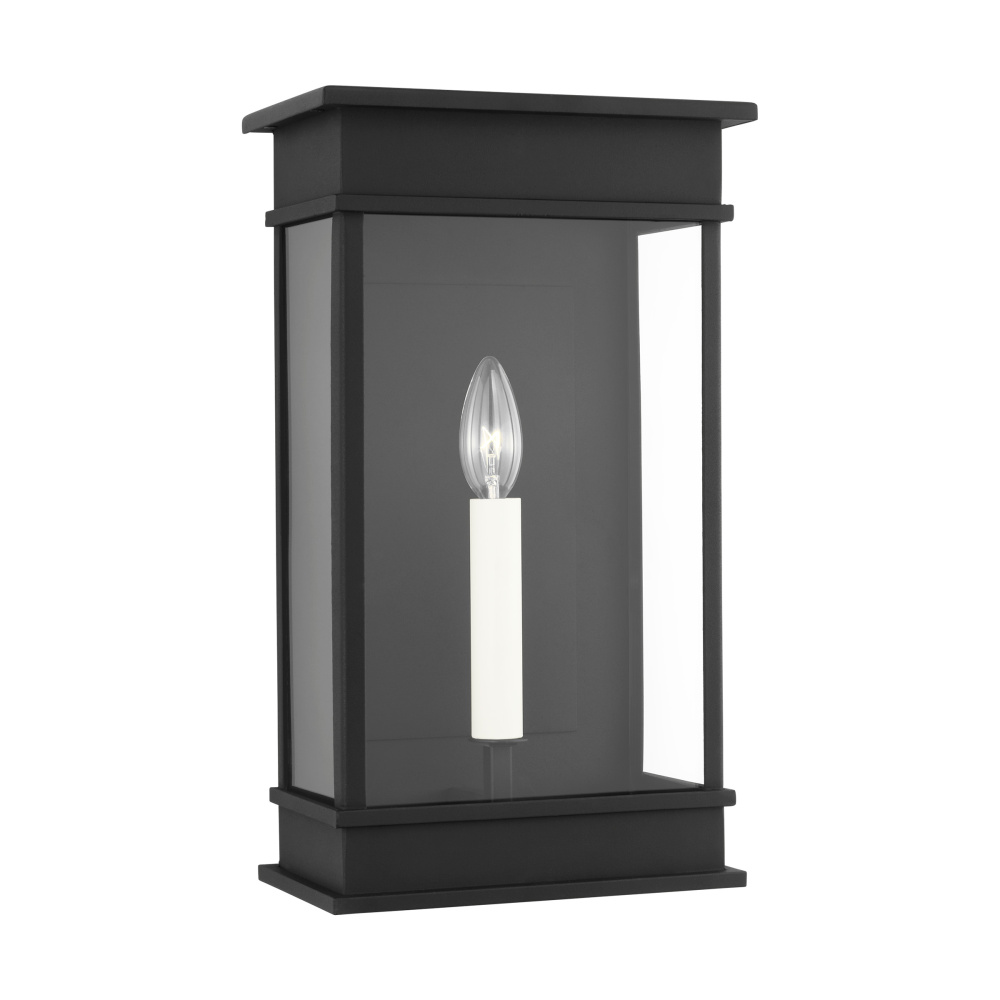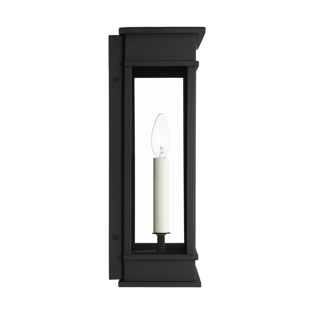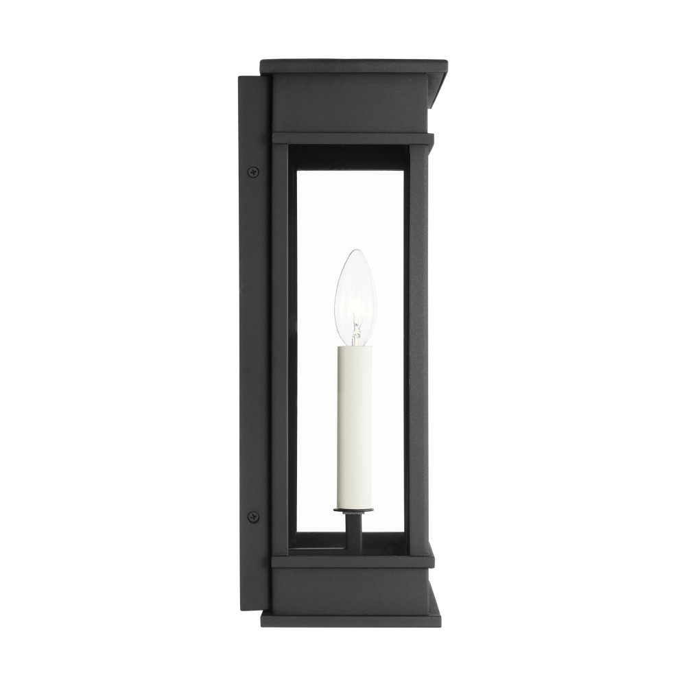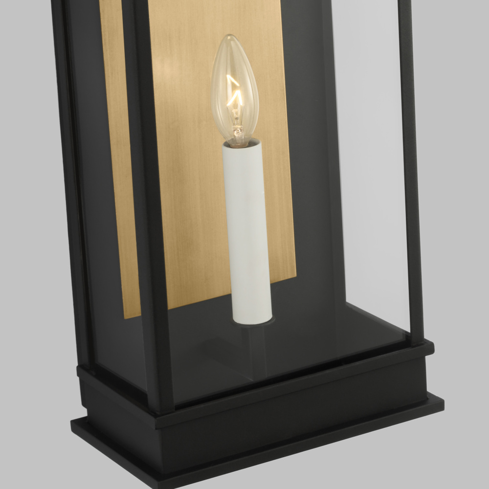 The Cupertino outdoor series by Chapman & Myers was created to embody a more transitional classic rectangular lantern profile. Rather than feature filament tube bulbs, each lantern has a more traditional candelabra with cream candle tubes to complete the design. The top and bottom of each lantern have an almost architectural stepped detailing.