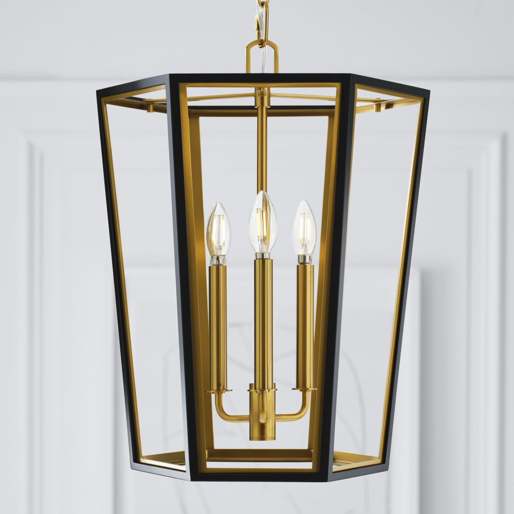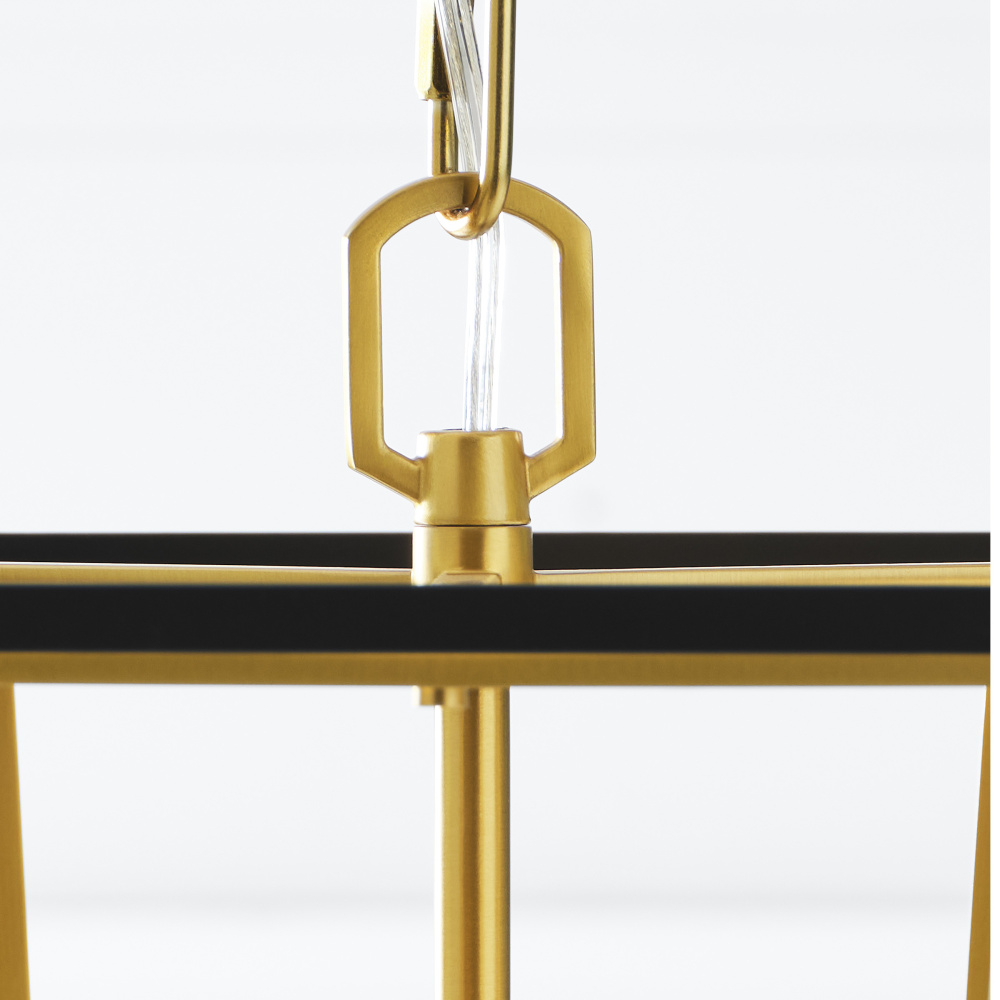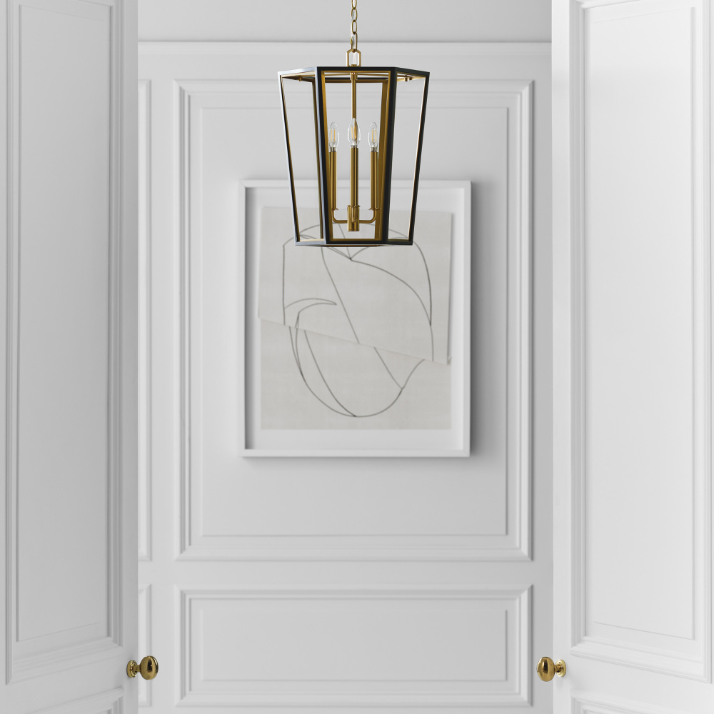 The Curt Three Light Lantern by Alexa Hampton is a modern take on an antique lantern. Elegantly crafted of steel with a Matte White or Midnight Black finish and accented with golden details. A stunning Hexagon shaped hub adds drama to the design.