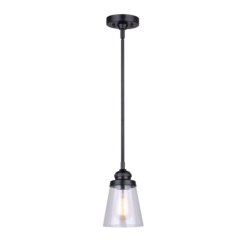 DECLAN, IPL1097A01BK, MBK Color, 1 Lt Rod Pendant, Seeded Glass, 60W Type A, 5.25" W x 11.5 - 59.5" H
