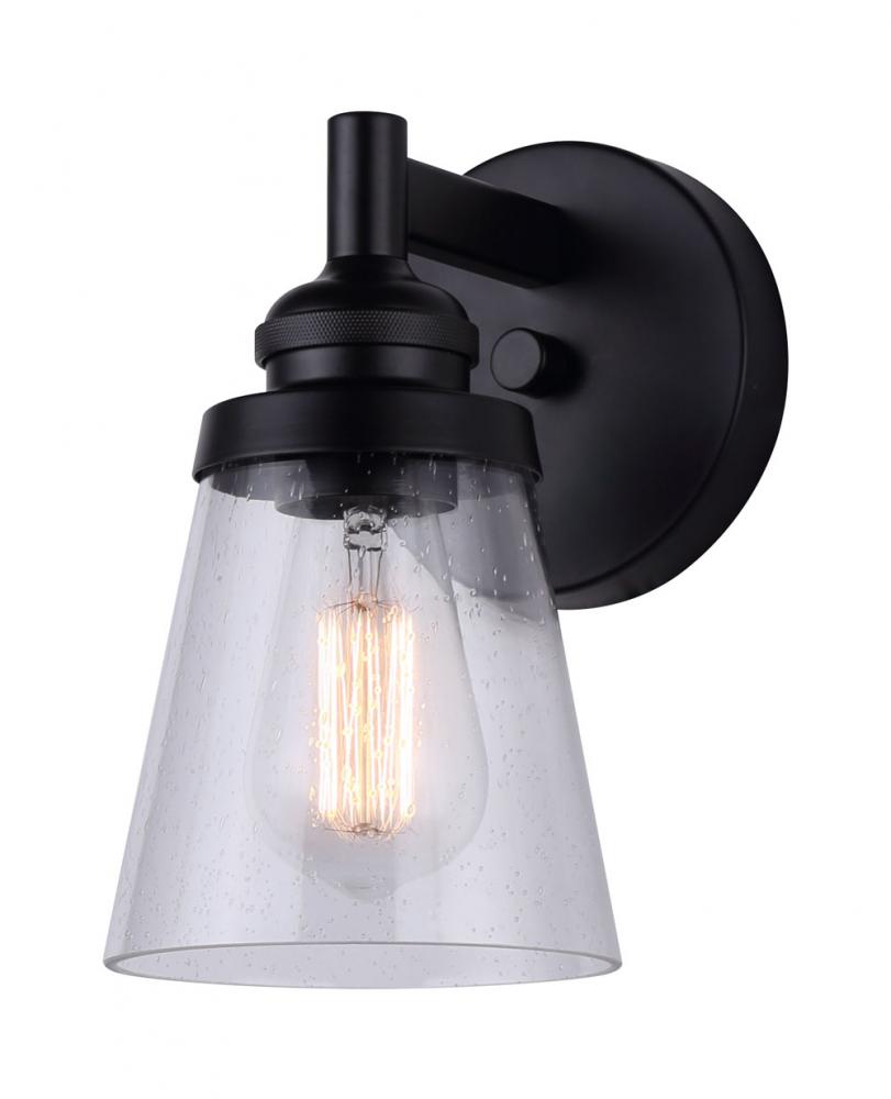 DECLAN, IVL1097A01BK, MBK Color, 1 Lt Vanity, Seeded Glass, 60W Type A, 5.25" W x 9.375" H x 7.25" D, Easy Connect Inc.