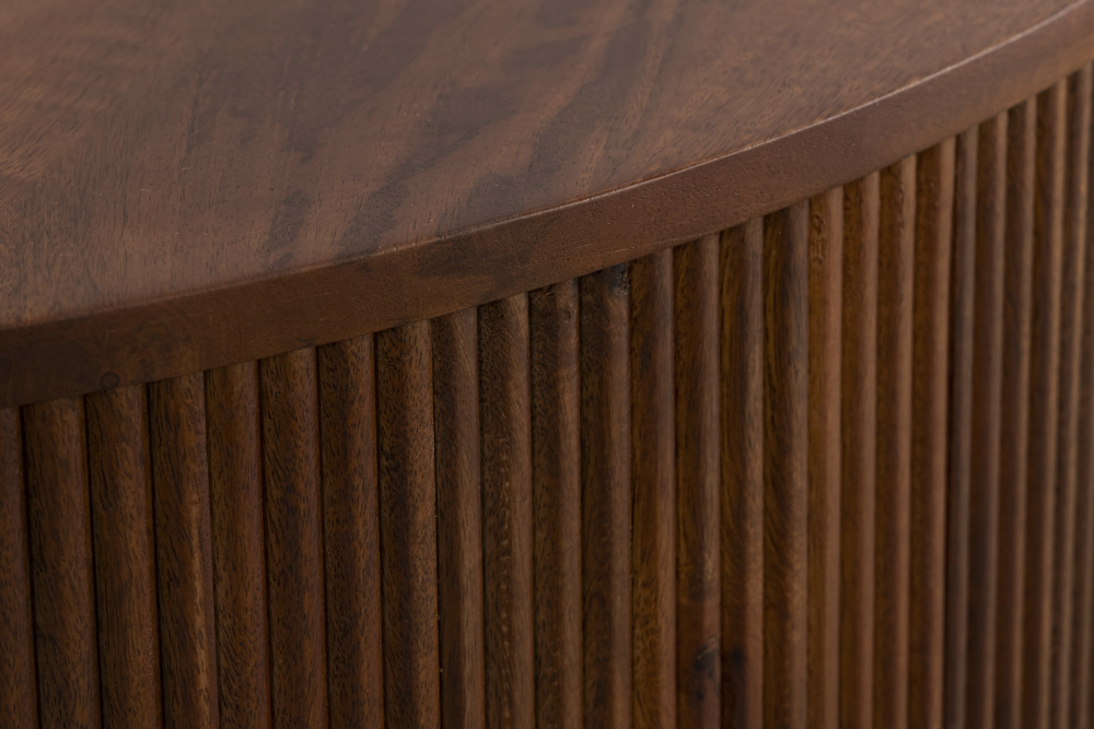 Striking Ribbed Detailing with Gold Accent: The table features a unique ribbed texture, adding visual interest and depth. The gold accent further elevates the design, offering a touch of luxury and refinement to your living space.
