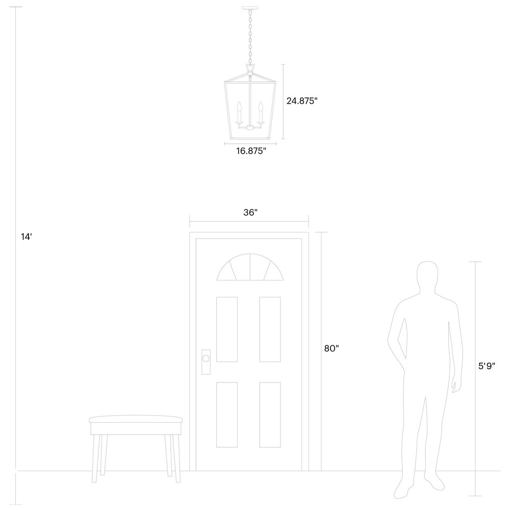 The Dianna four light indoor pendant in satin brass is the perfect way to achieve your desired fashion or functional needs in your home. The open, airy iron frame of this three-dimensional lantern brings depth and structure to any space.