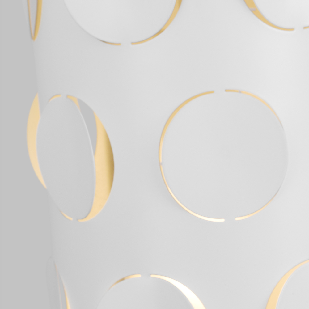 Dots are iconic to the kate spade brand—a simple and playful graphic motif. Dottie takes an iconic kate spade dot motif and cuts it into metal—creating a playful ambient light effect. A classic metal drum shade with an extra twist of perforated pattern. We’ve taken an iconic kate spade dot motif and pierced it into metal to create a base of a cylindrical table lamp. The base is illuminated—creating a playful ambient light effect in addition to the glowing drum shade. Use this fixture in any classic table lamp scenario—on either side of a sofa or bed, or in an office or entry as well.