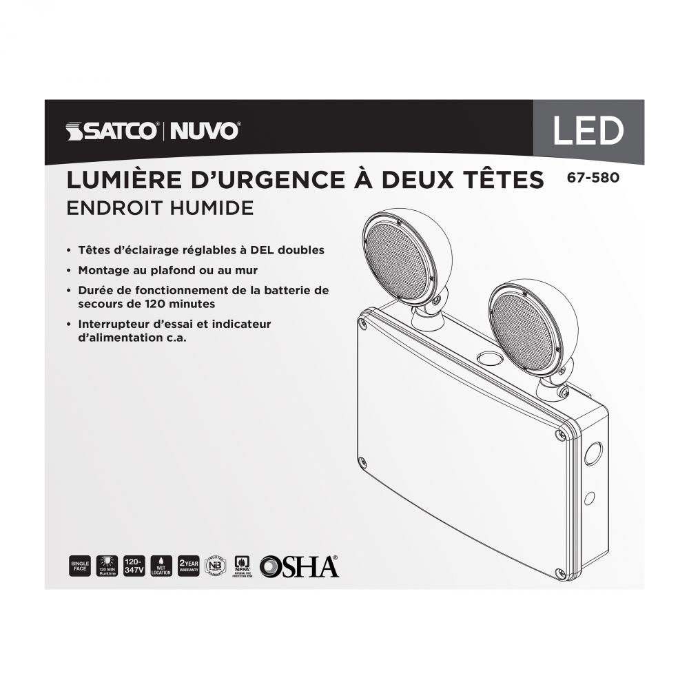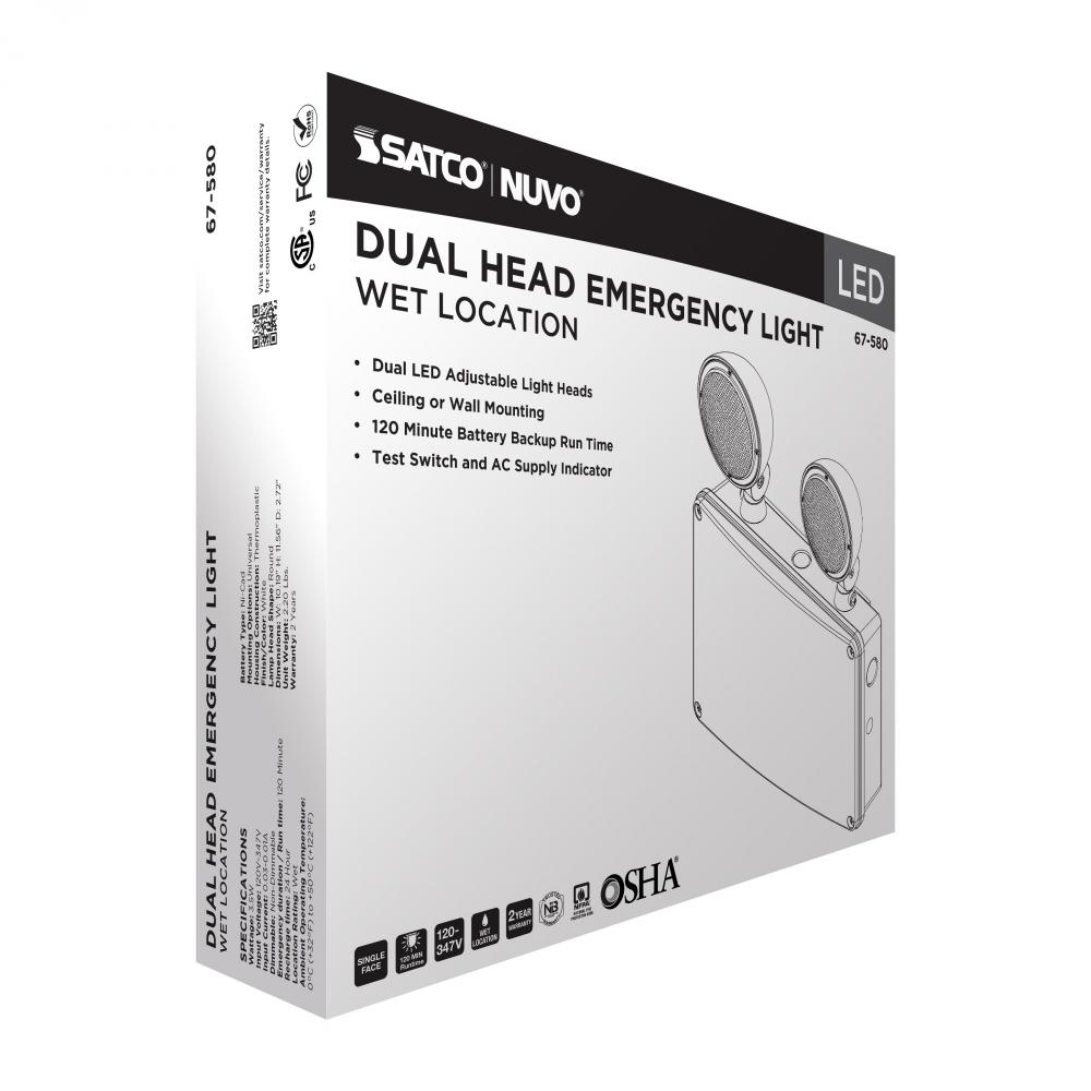 Keep your building safe and secure with SATCO NUVO 67-580 LED Emergency Lights. Two adjustable light heads provide ample illumination in the event of an emergency for up to two hours with the integrated battery backup. All models are wet location rated for