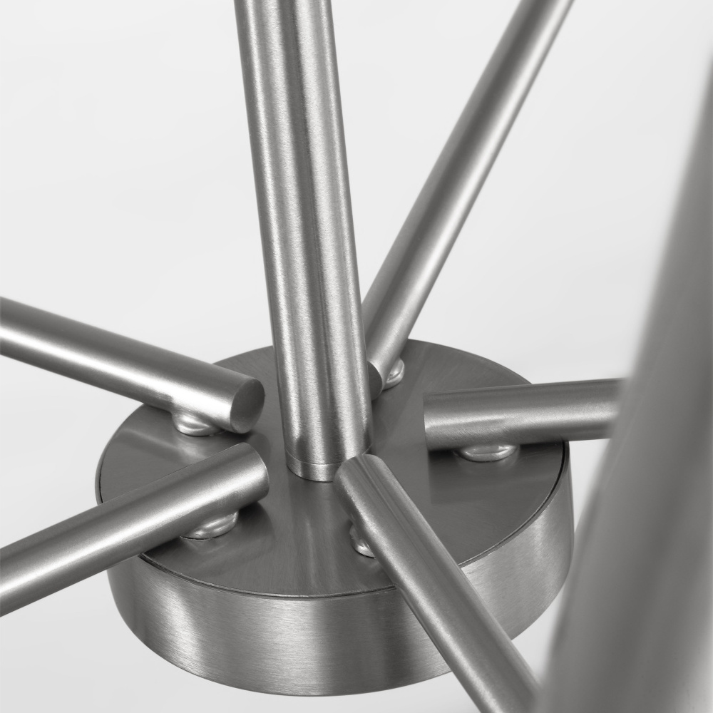 Crafted with Steel in a Brushed Nickel finish with brushed nickel steel shades