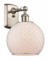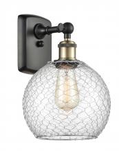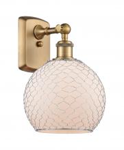 Farmhouse Chicken Wire - 1 Light - 8 inch - Antique Brass - Clear Glass with Black Wire Shade - Sconce
