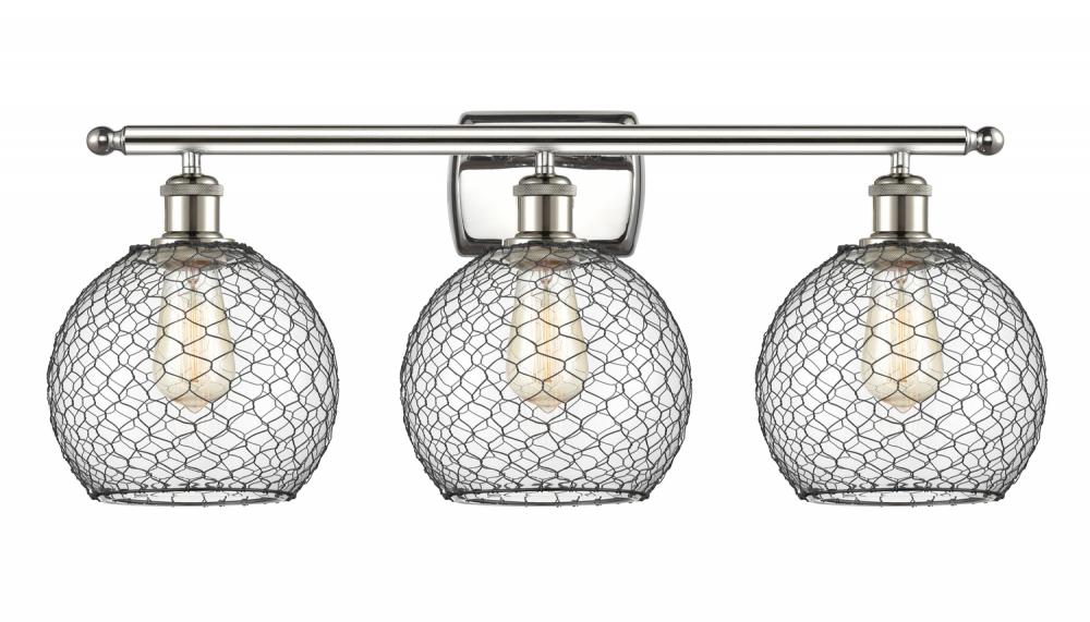 Farmhouse Chicken Wire - 3 Light - 28 inch - Polished Nickel - Clear Glass with Black Wire Shade - Bath Vanity Light