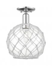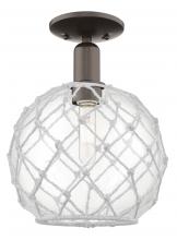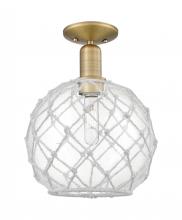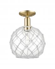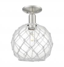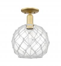 Farmhouse Rope - 1 Light - 10 inch - Satin Gold - White Glass with White Rope shade - Semi-Flush Mount