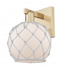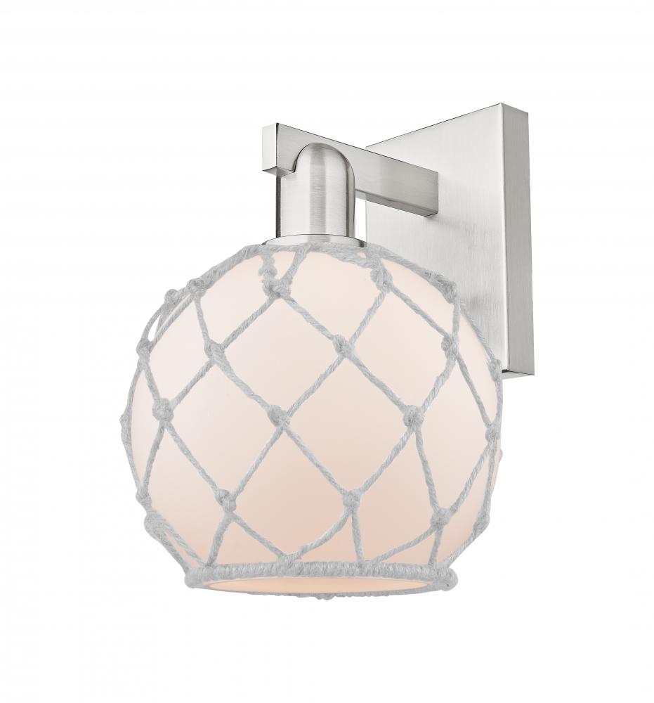 Farmhouse Rope - 1 Light - 8 inch - Brushed Satin Nickel - White Glass with White Rope shade - Sconce