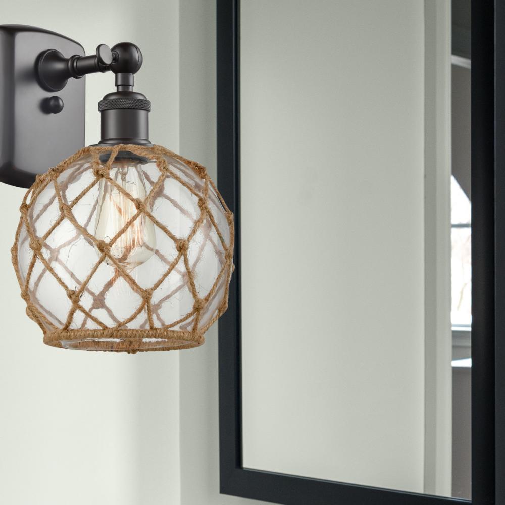 Farmhouse Rope - 1 Light - 8 inch - Oil Rubbed Bronze - Clear Glass with Brown Rope Shade - Sconce