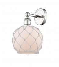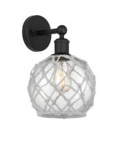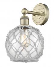 Farmhouse Rope - 1 Light - 8 inch - Satin Gold - Clear Glass with Brown Rope shade - Sconce