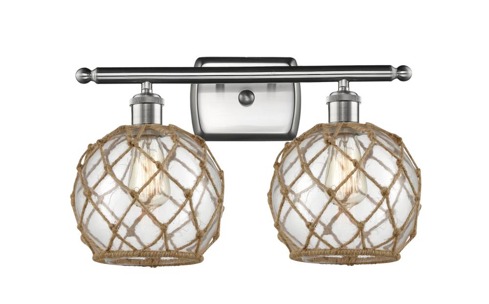 Farmhouse Rope - 2 Light - 18 inch - Brushed Satin Nickel - Clear Glass with Brown Rope Shade - Bath Vanity Light