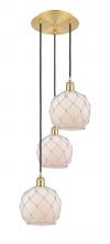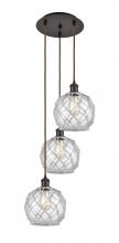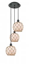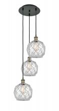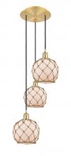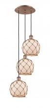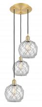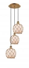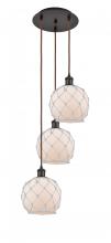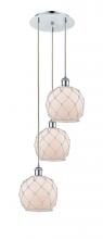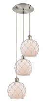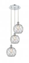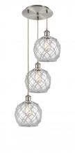 Farmhouse Rope - 3 Light - 15 inch - Polished Nickel - White Glass with Brown Rope shade - Cord Hung - Multi Pendant