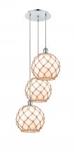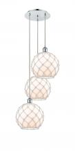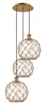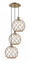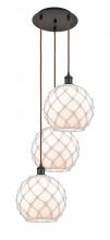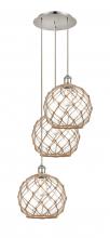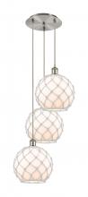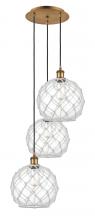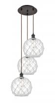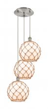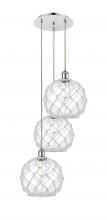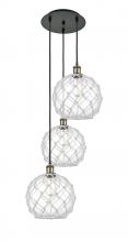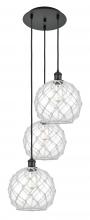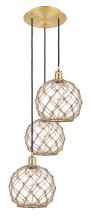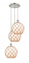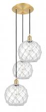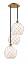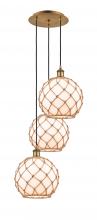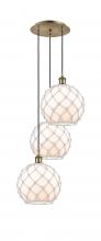 Farmhouse Rope - 3 Light - 17 inch - Satin Gold - Matte White shade - Cord Hung - Multi Pendant