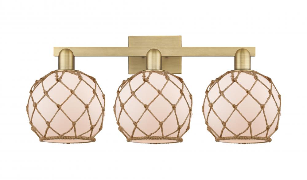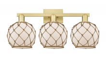 Farmhouse Rope - 3 Light - 27 inch - Brushed Brass - White Glass with Brown Rope shade - Bath Vanity Light