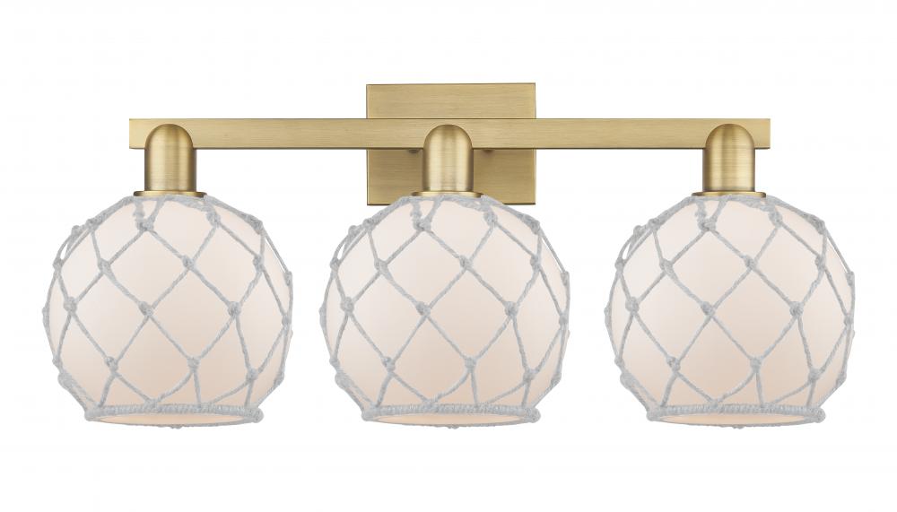 Farmhouse Rope - 3 Light - 27 inch - Brushed Brass - White Glass with White Rope shade - Bath Vanity Light