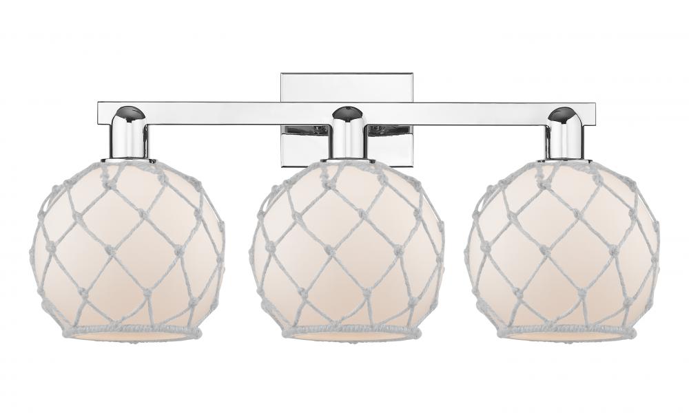 Farmhouse Rope - 3 Light - 27 inch - Polished Chrome - White Glass with White Rope shade - Bath Vanity Light